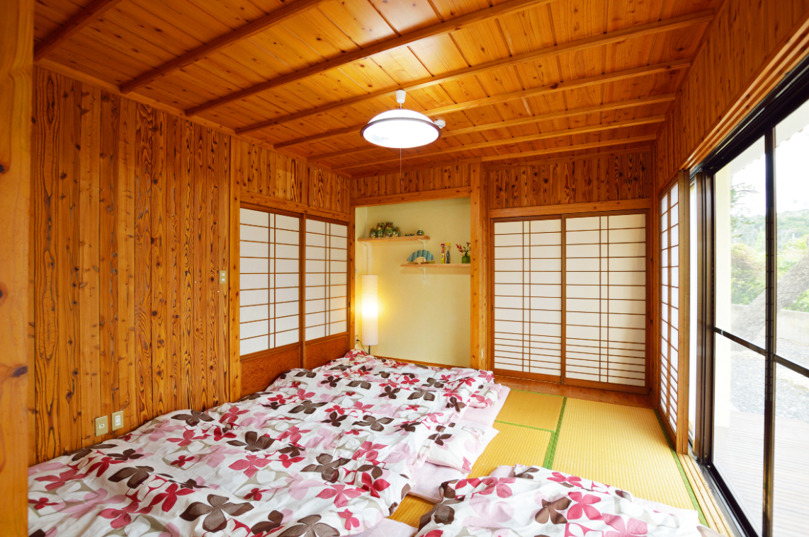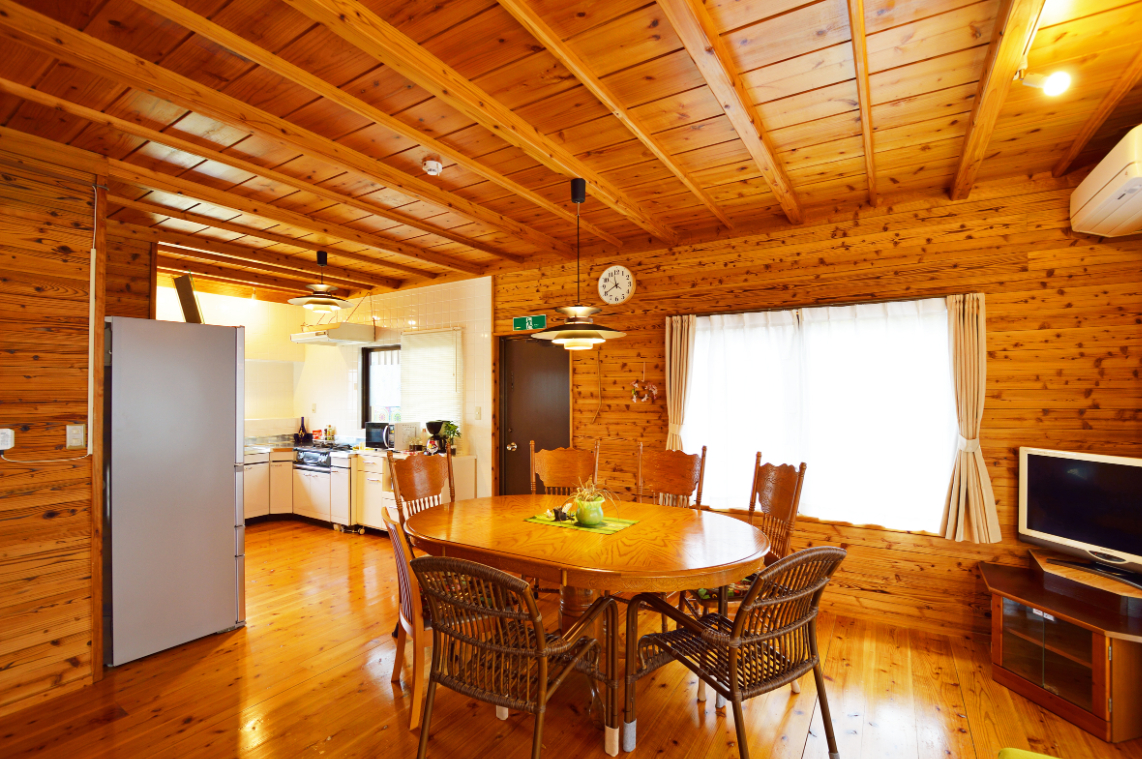 木目の内張りで和める室内です。 畳のお部屋で団らんとくつろぎのなか、今日のスケジュールをたてましょう。